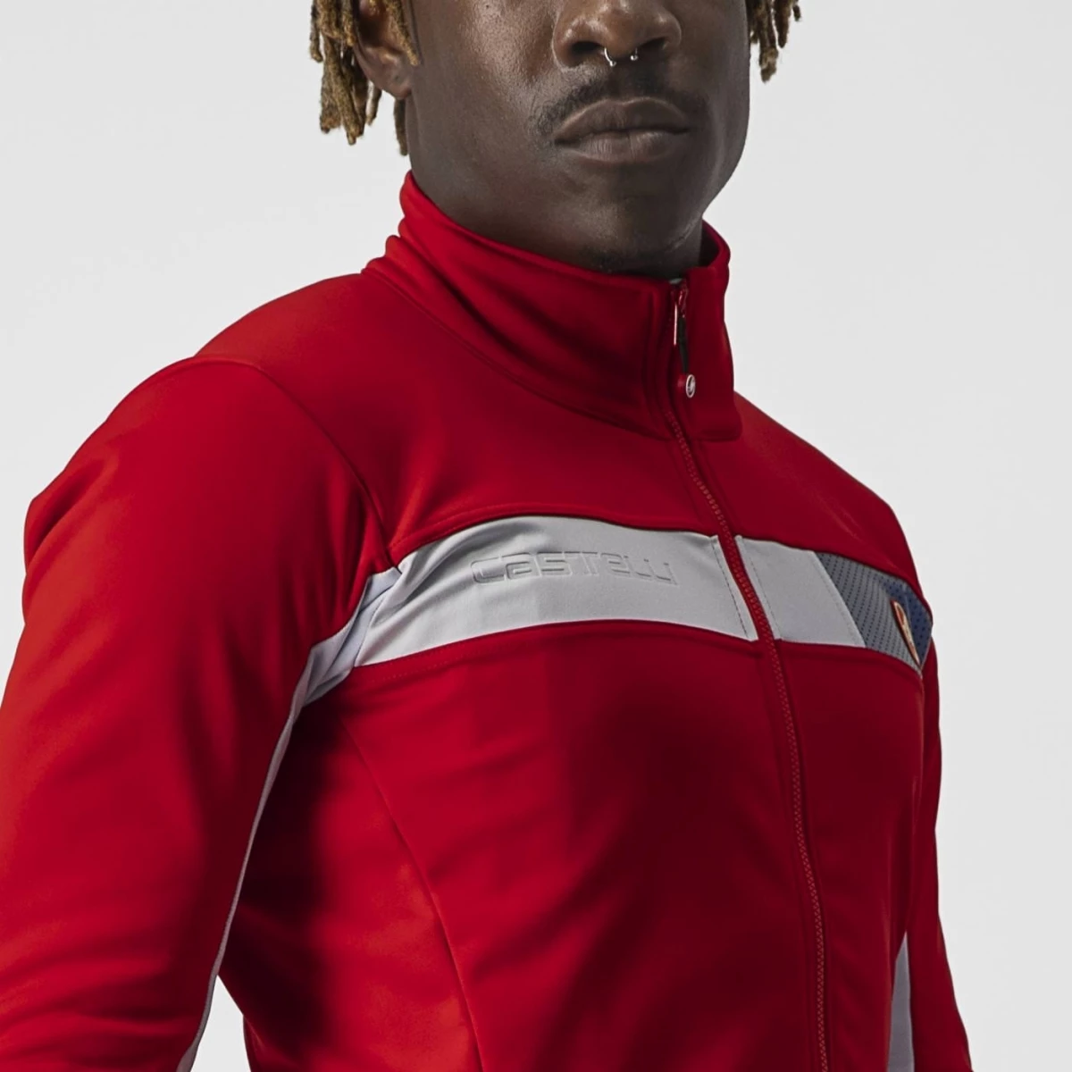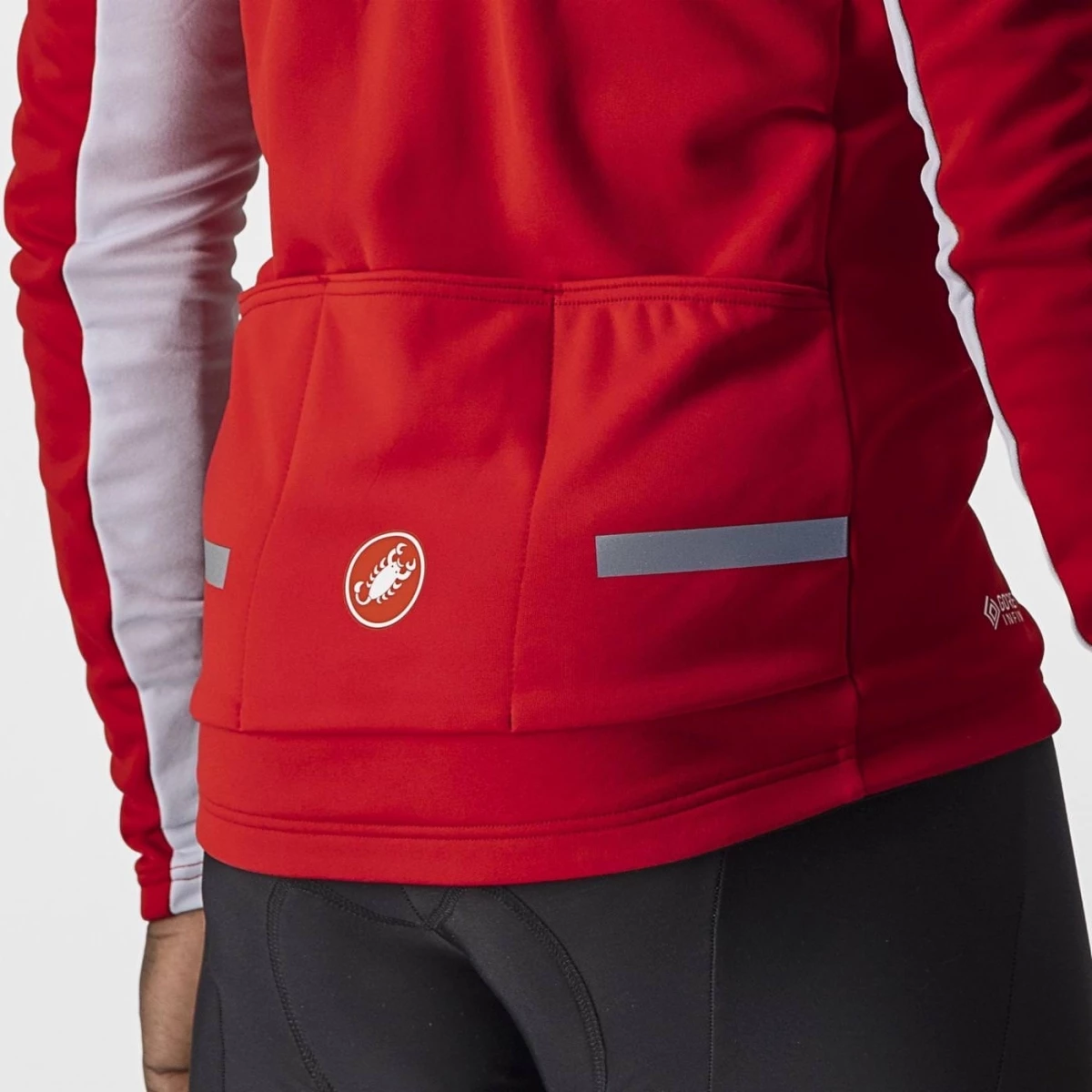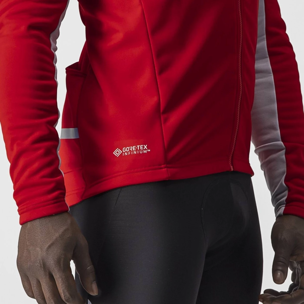 - Tissu GORE-TEX INFINIUM™ WINDSTOPPER® X-Fast avec doublure en polaire sur le haut de la poitrine et l’avant des manches