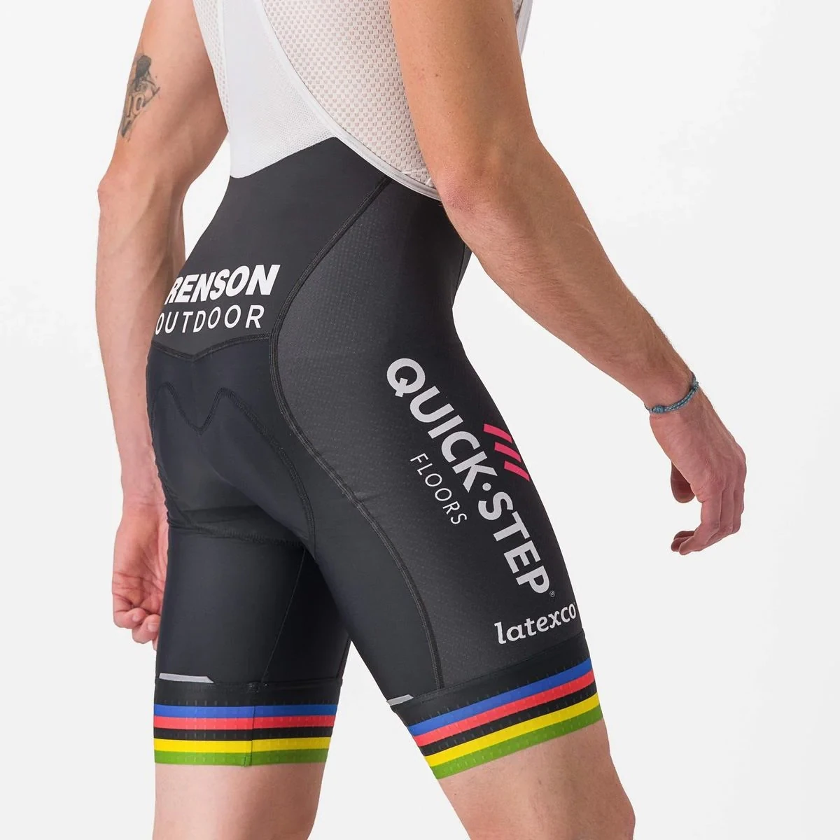 Le cuissard Soudal Quick-Step Competitzione a tout ce dont un cuissard a besoin. Le tissu texturé principal Vortex et les pinces de jambe Giro4 proviennent directement du cuissard Castelli Free Aero Race 4, tandis que la peau de chamois KISS Air2 offre beaucoup de confort. Le choix idéal si vous voulez briller comme les coureurs de Soudal Quick-Step dans ce cuissard confortable.