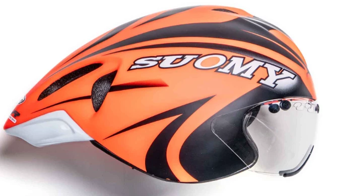 Le casque GT-R est issu de l’expérience de Suomy développée en soufflerie avec des casques de moto. L’objectif était la recherche de ventilation sans pénaliser l’aérodynamisme du produit. Et cet objectif a été atteint par l’équipe de travail Suomy avec ce casque léger, petit, ventilé et mat. Oui, mat, car la glisse au vent sur la peinture mate spéciale utilisée par Suomy est meilleure que celle obtenue habituellement avec la peinture brillante normale. Un soin méticuleux a été apporté au contrôle du flux d’air, afin d’obtenir un produit qui, en plus d’être absolument efficace pour les « chrono-cyclistes », est le produit absolument parfait et idéal pour le triathlon.